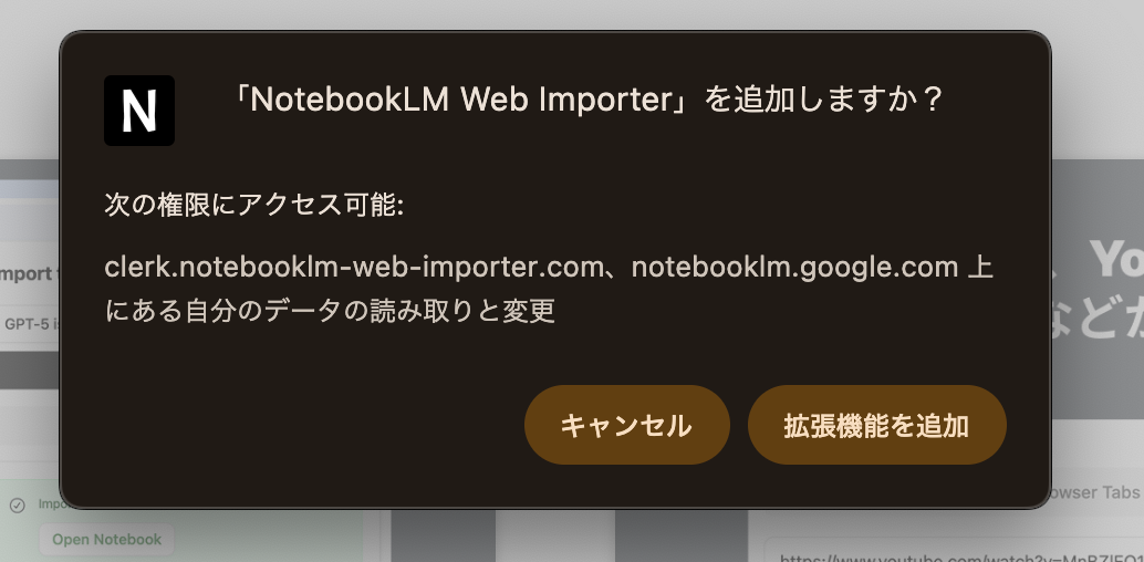 確認画面で「拡張機能を追加」を選ぶだけでインストールは完了です。