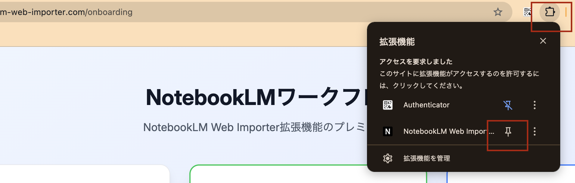 その機能をさらに使いやすくするのが「NotebookLM Web Importer」という拡張機能です。