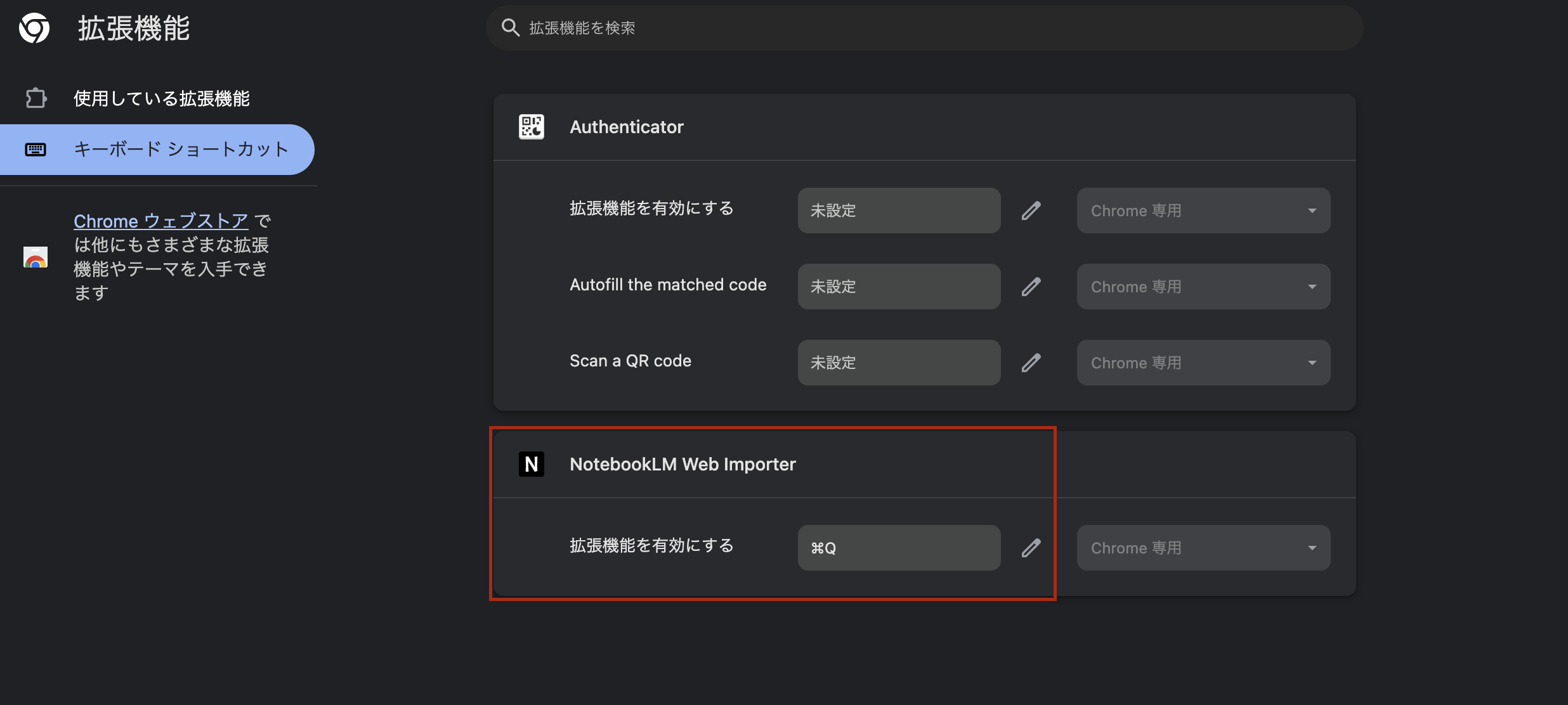 まずはGoogle Chromeでウェブストアにアクセスし「NotebookLM Web Importer」を検索。