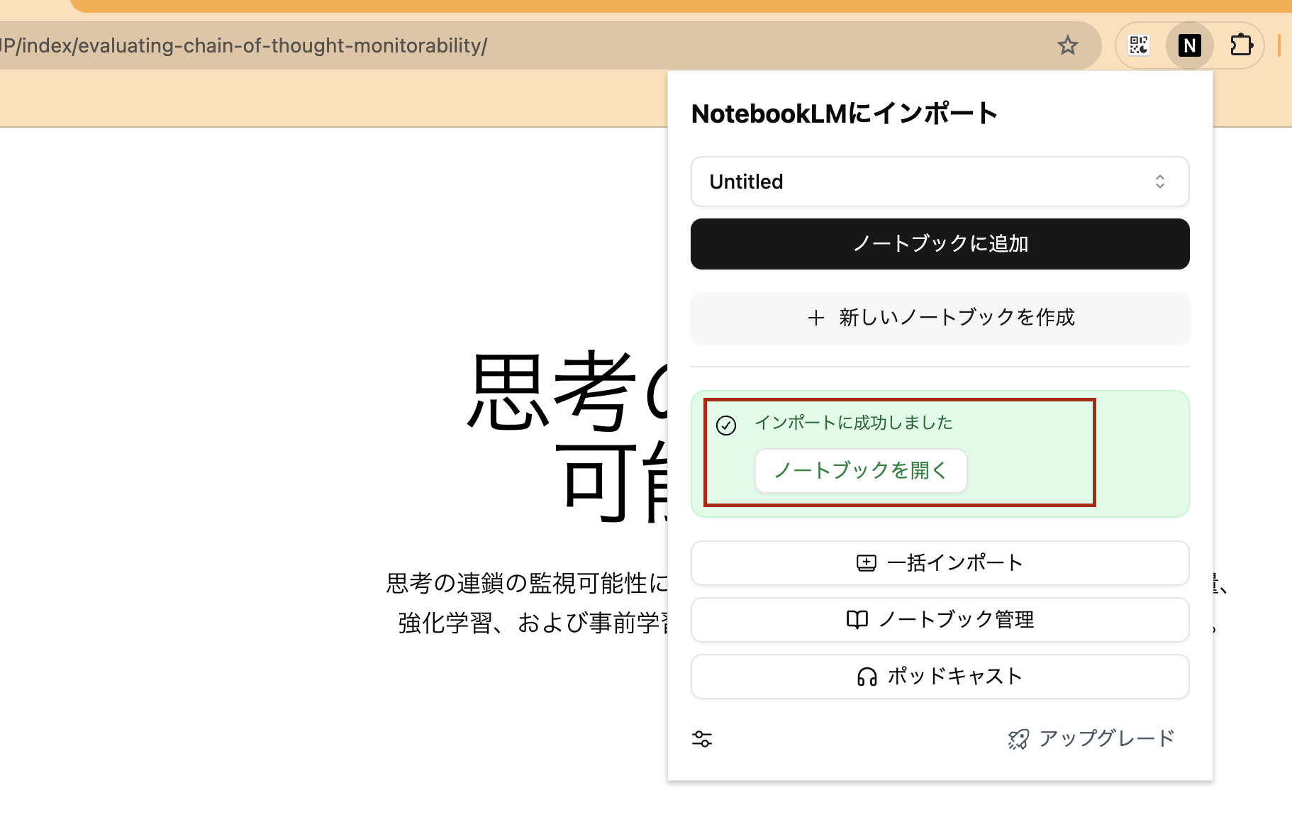 ワンクリックでNotebookLMに取り込める